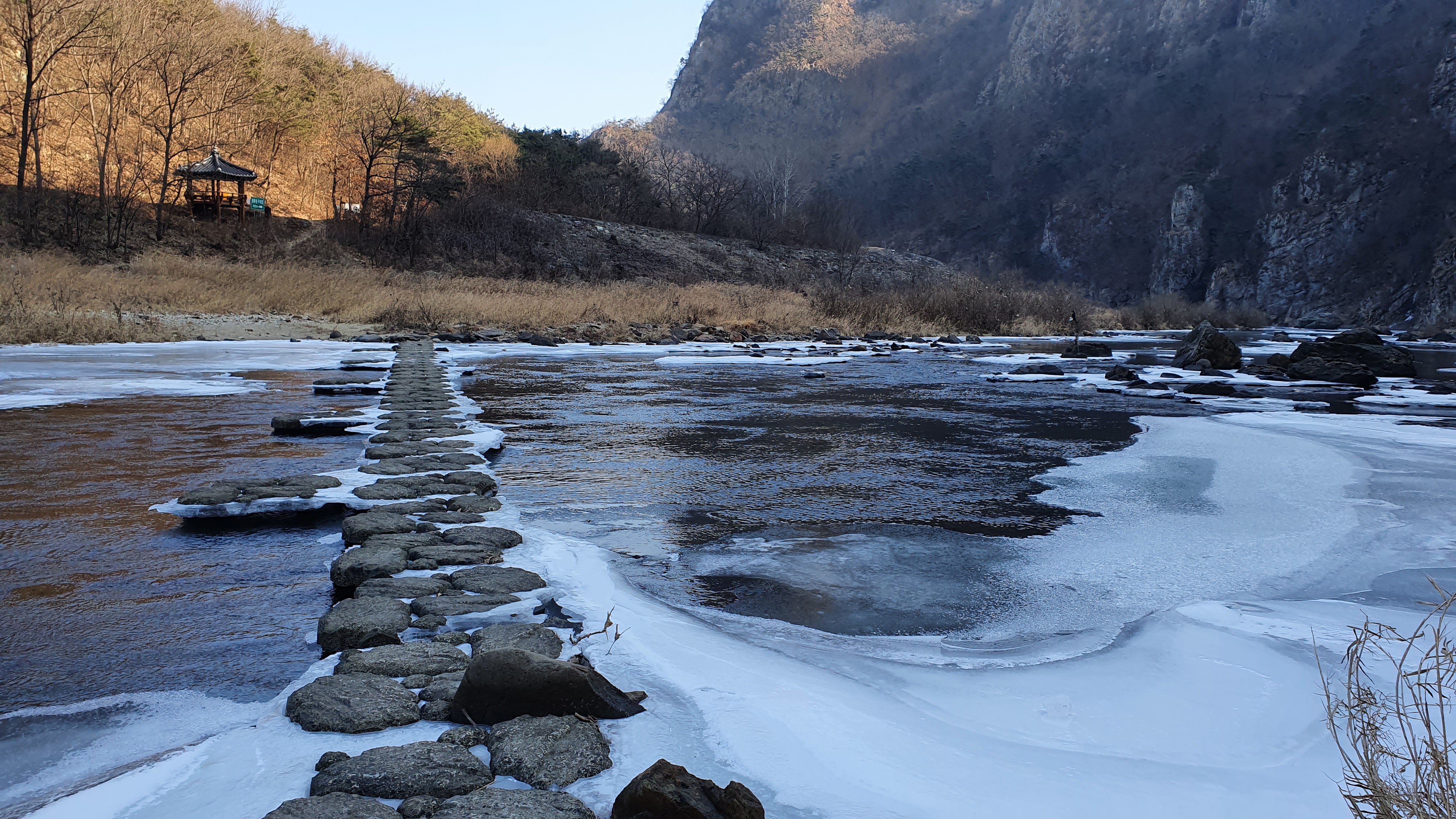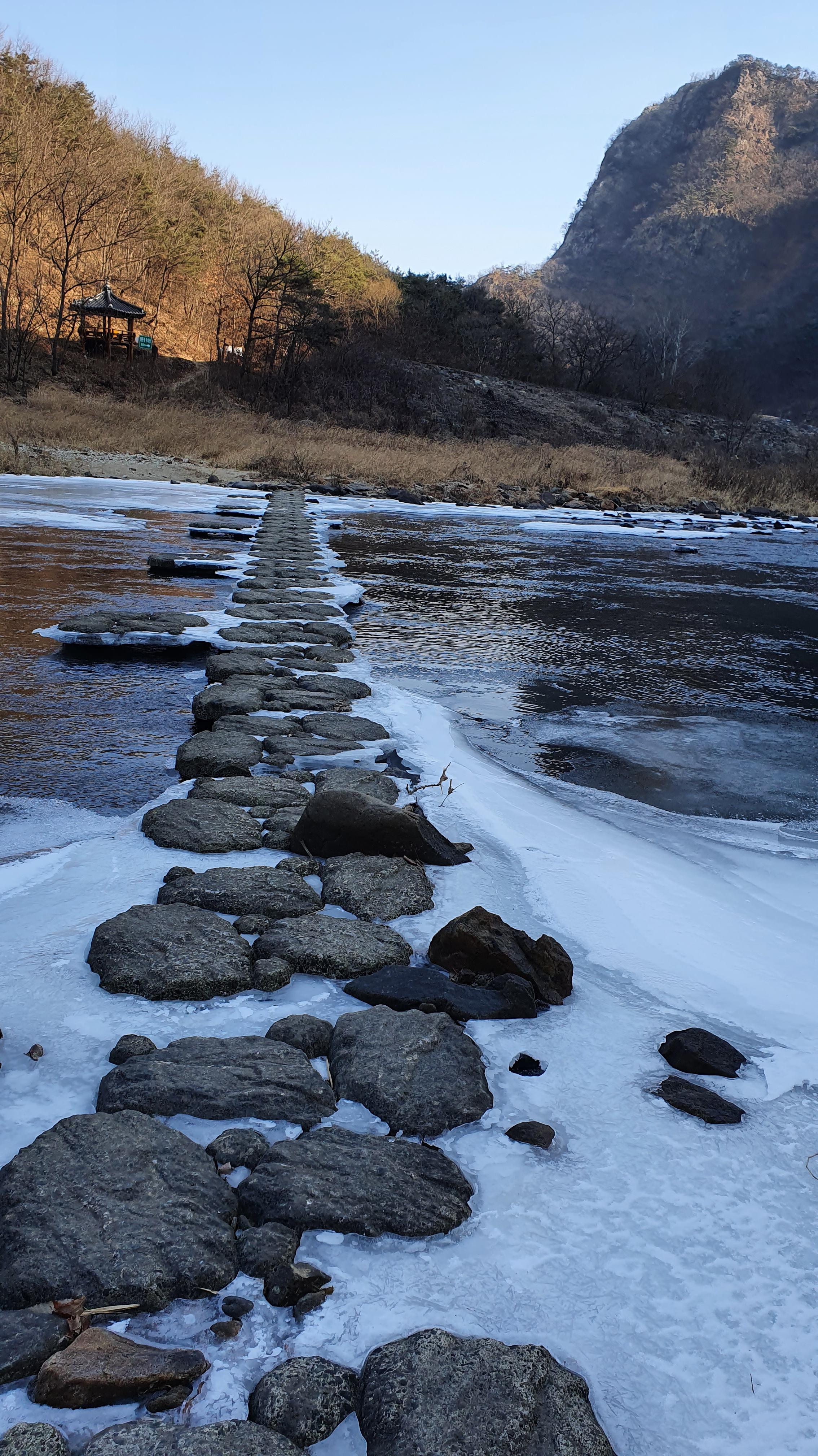 제5봉에서 하산 하여 초강천을 건넌다.