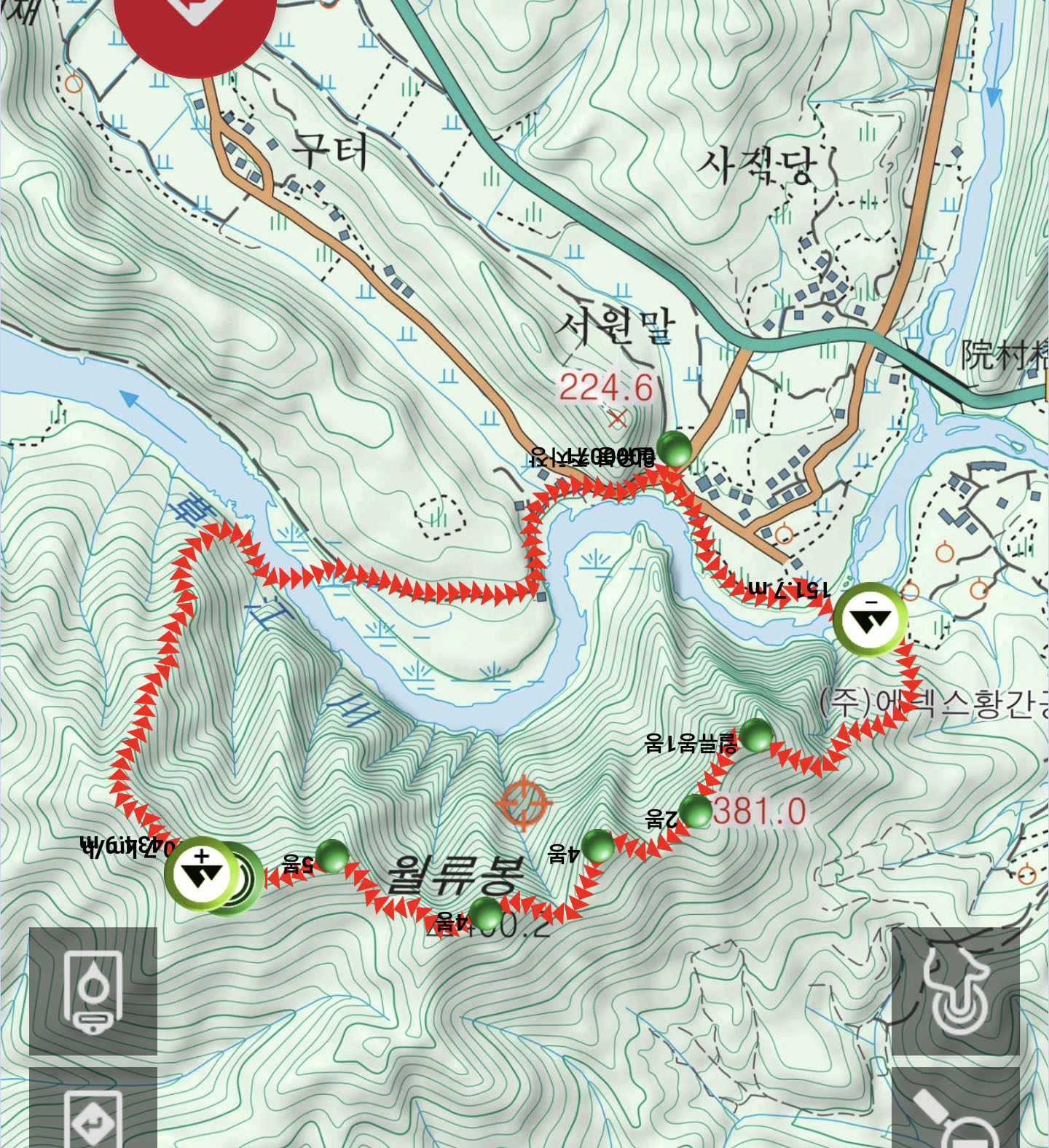 월류봉 주차장 - 초강천 - 제1봉~제5봉-초강천 -월류봉 주차장