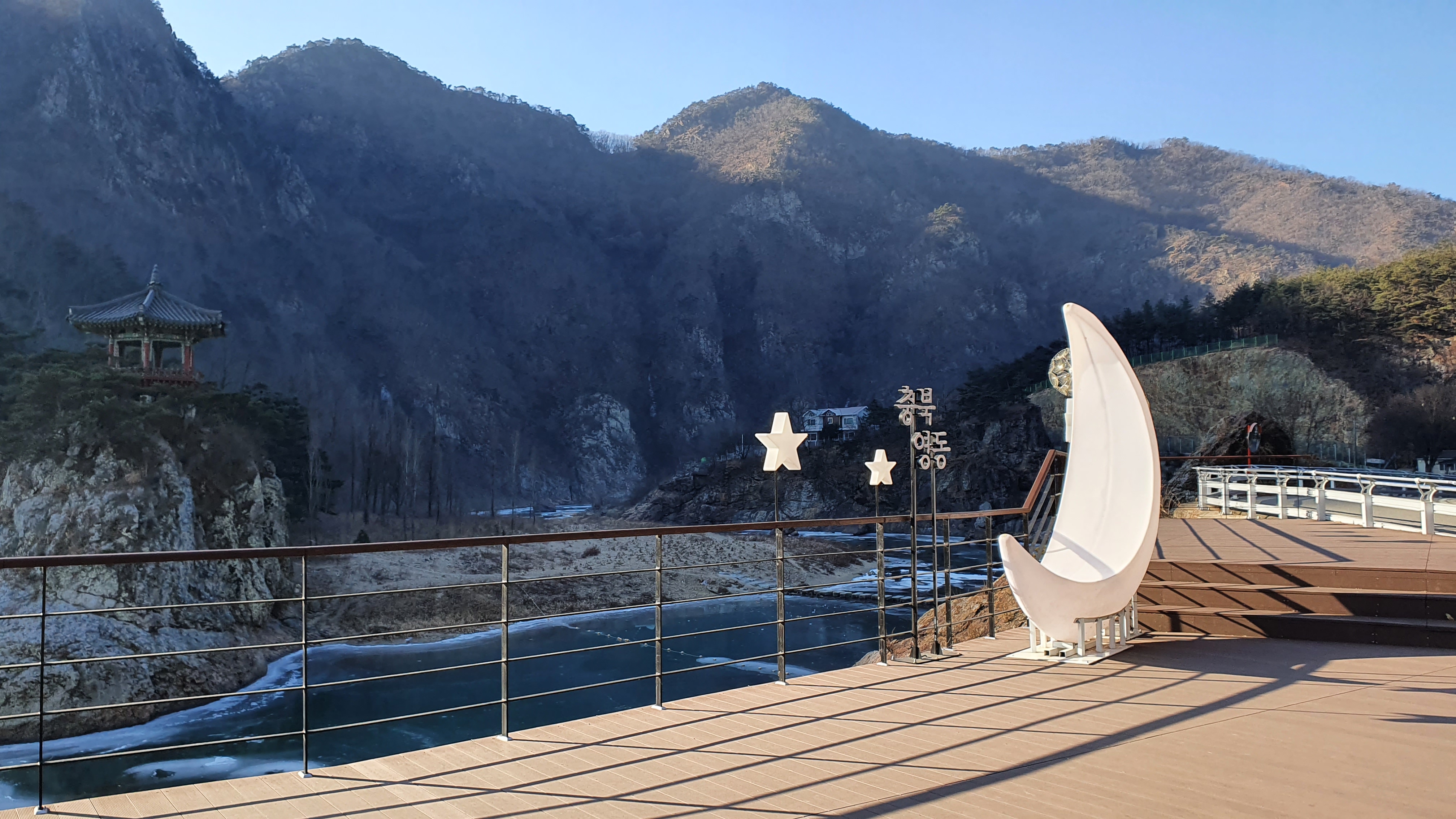 초강천 건너 월류봉 주차장으로 다시 돌아온다.